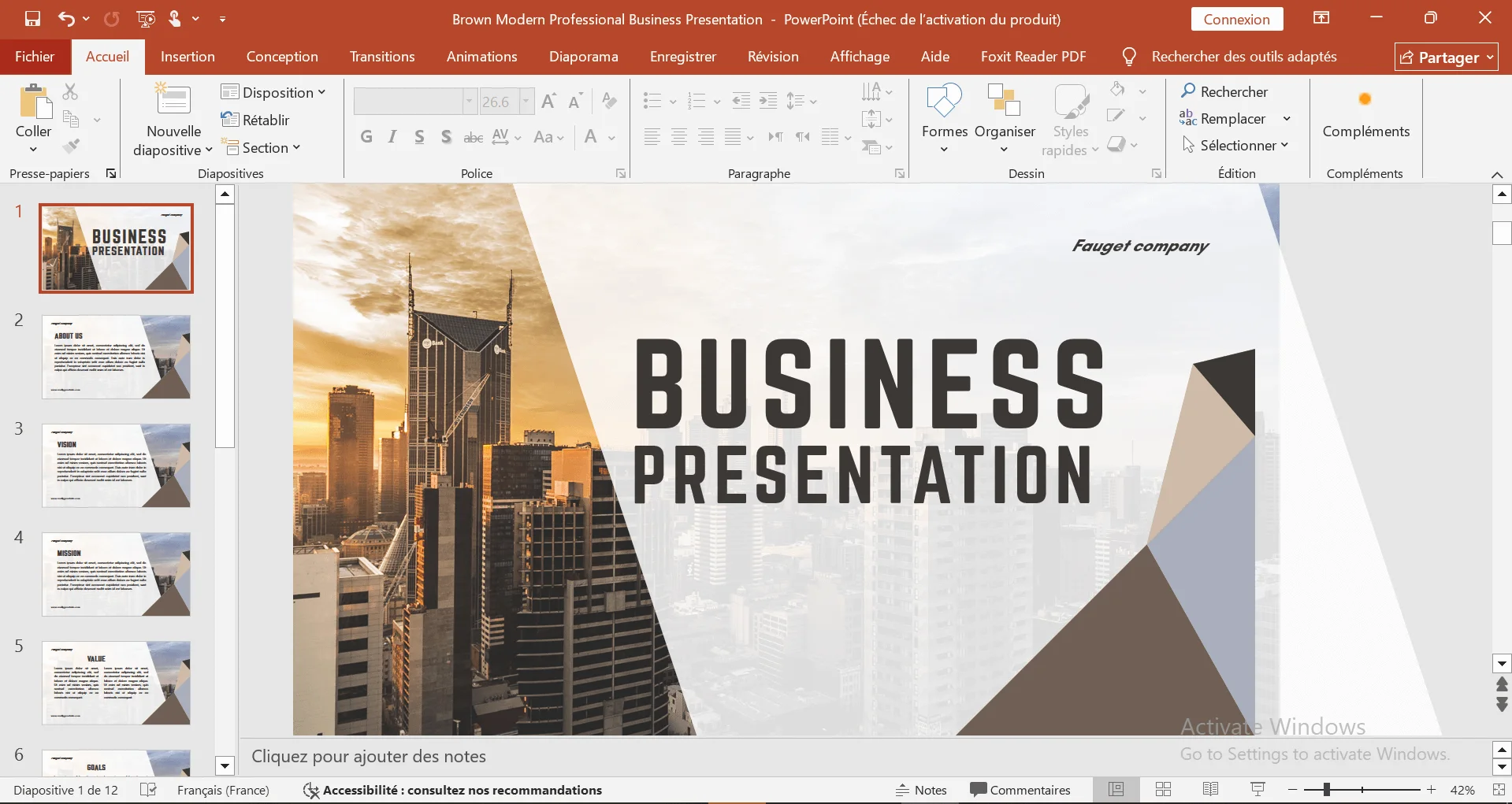 Présentation PowerPoint (fictive)
